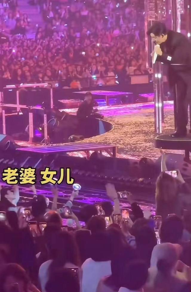 周渝民在演唱间隙,多次将目光投向观众席,眼神中满是宠溺与骄傲。当看到妻女时,他眼含泪光,这一刻被媒体解读为“平凡父亲终于获得孩子认同”的感动。